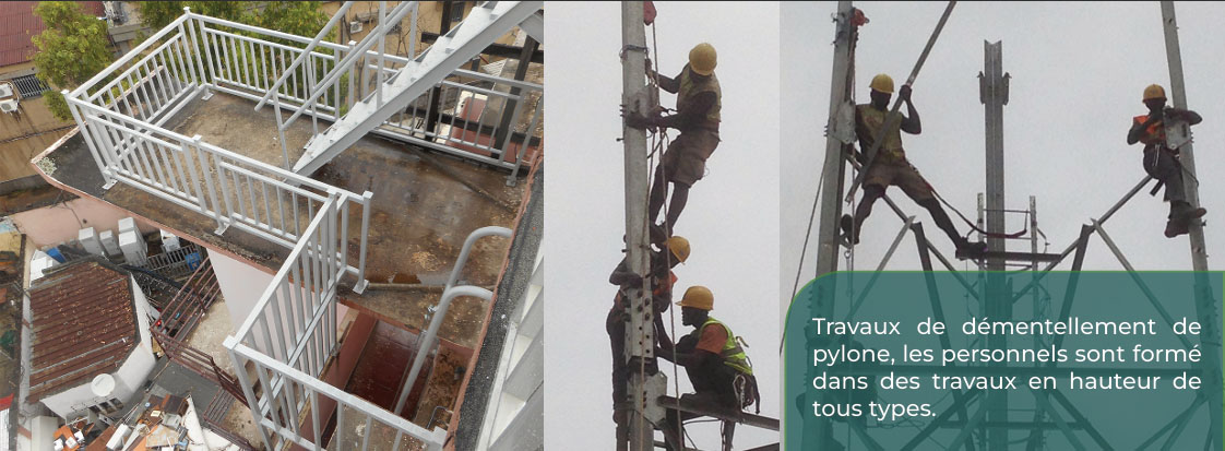 Travaux de démentellement de pylônes, les personnels sont formé dans des travaux en hauteur de tous types